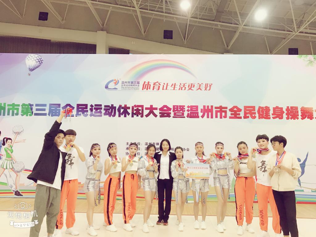 10月28日,在学校各部门的大力支持下,我院排舞队参加了温州市教育局主办的“第二届大学生操舞大赛"和温州市体育局主办的“全民健身操舞大赛",在比赛中荣获佳绩!