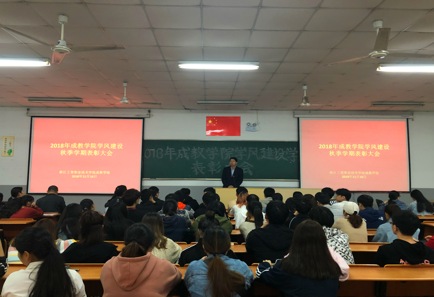 为了总结过去一年各项工作,在其基础上发现不足,表彰优秀,树立模范,营造良好的工作环境,特此在2018年11月16日中午,学院在八号楼8110教室举行了成教学院2018年学风建设秋季学期表彰大会。