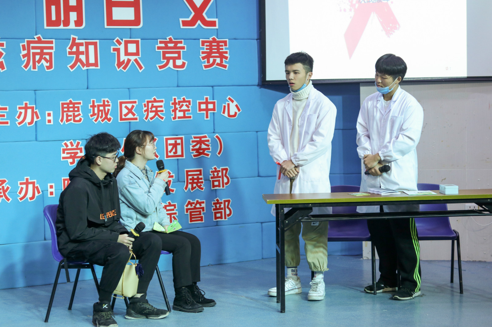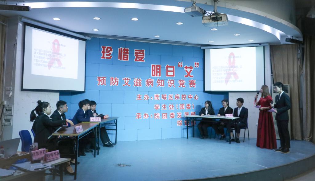 2018年12月1日是第31个“世界艾滋病日”。为进一步贯彻落实《国务院关于进一步加强艾滋病防治工作的通知》和《中国遏制与防治艾滋病“十二五”行动计划》,加强艾滋知识的宣传和加深对大学生的思想教育,切实推进艾滋病防治工作,遏制艾滋病的肆虐。12月14日由鹿城区疾控中心和伟德BETVlCTOR1946联合主办的“珍惜爱,明白‘艾’”——预防艾滋病知识竞赛主题活动在阶梯教室举办。参加本次活动的领导嘉宾分别有:学生处处长林海春、鹿城区疾控中心艾滋病防治科主任朱海深、鹿城区疾控中心艾滋病防治所副所长叶振淼、鹿城区疾控中心艾滋病防治科科长赵东设以及学院团委张慧老师。现场300多个座位座无虚席,各分院(系)共10支队伍参加了比赛。