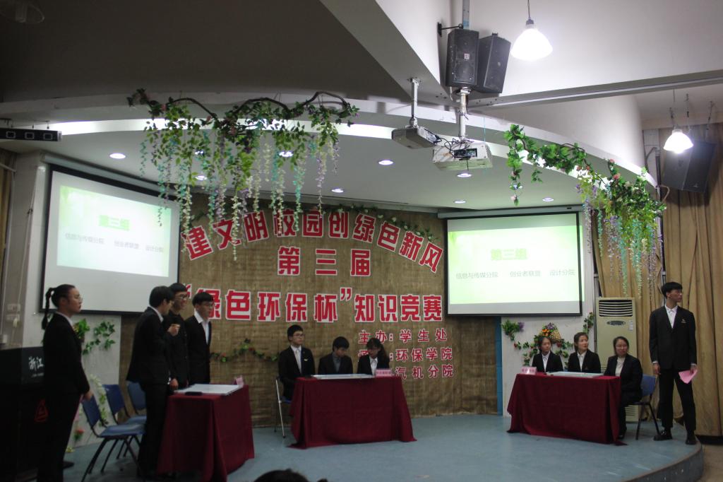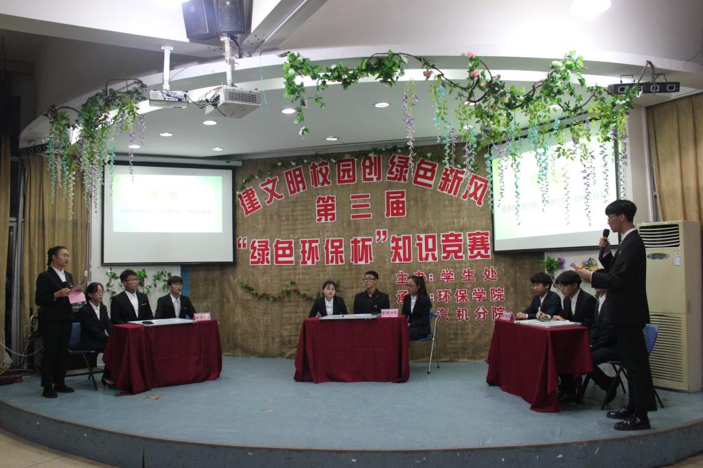 随着社会的发展,人们生活水平的提高,但是环境问题也愈发突出。而保护环境是每一个公民的责任,更是大学生的责任。因此为了提高大学生环保意识,提升大学生的环保知识水平,2018年12月18日晚上,由学生处主办,汽机分院(环保学院)承办的第三届“建文明校园,创绿色新风”绿色环保杯知识竞赛在阶梯教室拉开帷幕。