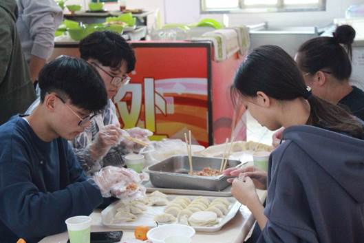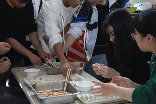 本次活动主要参与对象是电子系学生会全体成员,活动地点是学校二号食堂。一大早学生会部长就带领学生会干事去购买饺子皮、饺子馅以及水果饮料等食材。由于大家喜欢的口味各不相同,因此我们准备了许多口味。下午一点,冬至活动正式开始。大家井然有序,干事们齐心协力地将买回来的菜洗干净,切好分类。一部分人调馅料,一部分人包饺子,不会包的也在很认真地学,还有一部分人在为忙碌的人服务。虽然最后出锅的饺子有露馅的,或者是不好看的,但大家还是大口大口地吃着,脸上洋溢着幸福的笑容。因为这些饺子是我们大家共同努力完成的成果。品尝着自己动手包的饺子,皮里皮外透着一股子香味和满足。