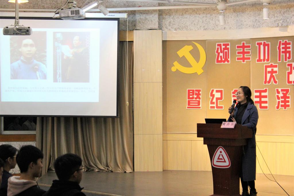 2018年12月26日是伟大领袖毛泽东诞辰125周年,为了纪念毛主席诞辰并庆贺改革开放40周年,12月25日晚上,汽机分院学生党支部在多功能厅举办“颂丰功伟绩·庆改革开放40周年”暨纪念毛泽东诞辰125周年活动,分院第二学生党支部书记黄丹华老师、学生党员、入党积极分子参加了此次活动,活动由学生党员沈傢豪和分院团副唐成杰主持。