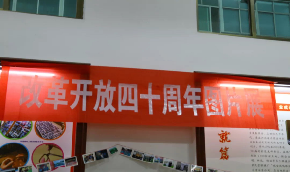 演出开始之前,礼堂内,志愿者们还布置了“改革开放四十周年图片展”,有神州火箭升腾上空的刹那,有青藏铁路成功通车的首次运行等等,一帧帧画面都记录了四十年来祖国建设的发展巨变。
