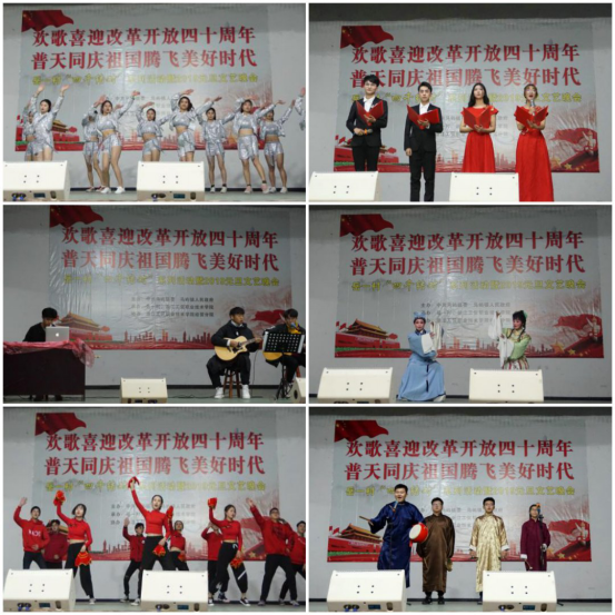 冬日的严寒丝毫没有影响礼堂内的热烈气氛,表演依旧如火如荼地进行着。四位经贸学子慷慨激昂的朗诵《与祖国同行,铸华夏辉煌》,一字一顿地诉说着改革开放四十年来的伟大功绩;老年艺术团带来的越剧更以古典的服饰和悠扬的转音向观众展现了中华国粹的魅力;《改革开放四十年,中国变化两重天》以四人三句半的形式介绍了改革开放四十年来中国从航天航空建设到精神文明建设的多方面成就,让人直观地体会到这四十年其间的历史巨变;接下来的舞蹈《红船向未来》中舞者纷纷以手喻桨,竞相驶向中国的美好未来;武术《中国功夫》刀扇结合,尽显刚柔相融之美;《我爱你中国》则以萨克斯与B-Box相结合的形式,展现出高雅与现代流行乐的激情碰撞;家喻户晓的《五星红旗》以其高亢嘹亮的歌声响彻整个礼堂。