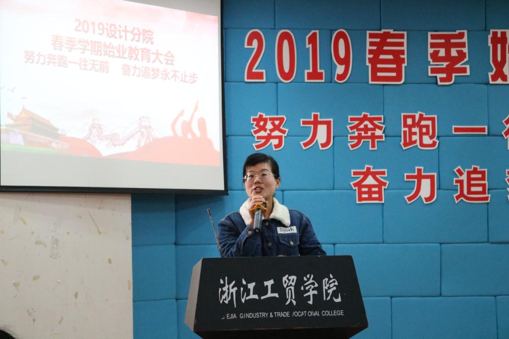 2月24日,设计分院主题为“努力奔跑一往无前 奋力追梦永不止步”的2019年春季学期始业教育在一号楼阶梯教室举行。大会分两场进行,分院党总支书记杨松涛,辅导员陈剑、谢娇莲、高莎,2017级、2018级班主任及全体学生参加大会。