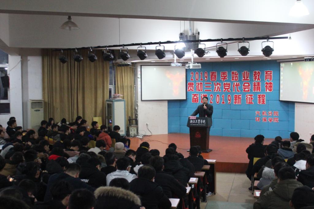 围绕“立德树人,建设中国特色高水平高职院”主题,2019年2月24日晚上,汽机分院在阶梯教室举行“贯彻三次党代会精神,奋进2019新征程”为主题的秋季始业教育。到场人员有汽机分院书记吴学亮老师,院长助理李晓星老师,辅导员周全老师、黄丹华老师、2017、2018级班主任和班级同学。