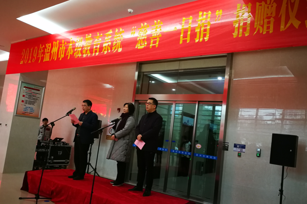 3月1日下午,2019年温州市本级教育系统“慈善一日捐”捐赠仪式在市教育局一楼大厅举行,学院工会常务副主席章纪顺参加仪式,代表我院教职工向温州市慈善总会捐赠善款44030元。