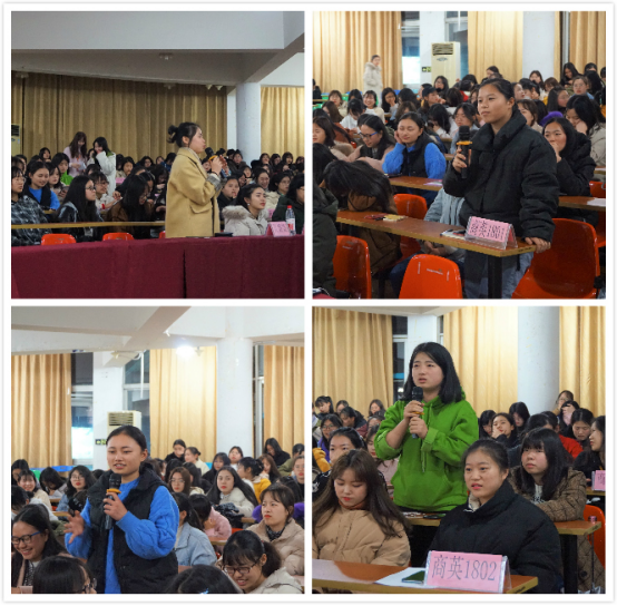 讲座尾声,吴妮妮老师上台总结,指出大学生生理健康教育相对缺失的现状,希望通过此次讲座普及生理卫生的基础知识及其重要性,提高同学们的自我保护意识;珍惜爱护自己的身体,与异性交往把握分寸。此外,她倡导大家在保证生理健康的同时也不能忽略身体健康,积极参与即将开展的“荧光夜跑”活动以及学院举办的其他有益身心健康的活动。