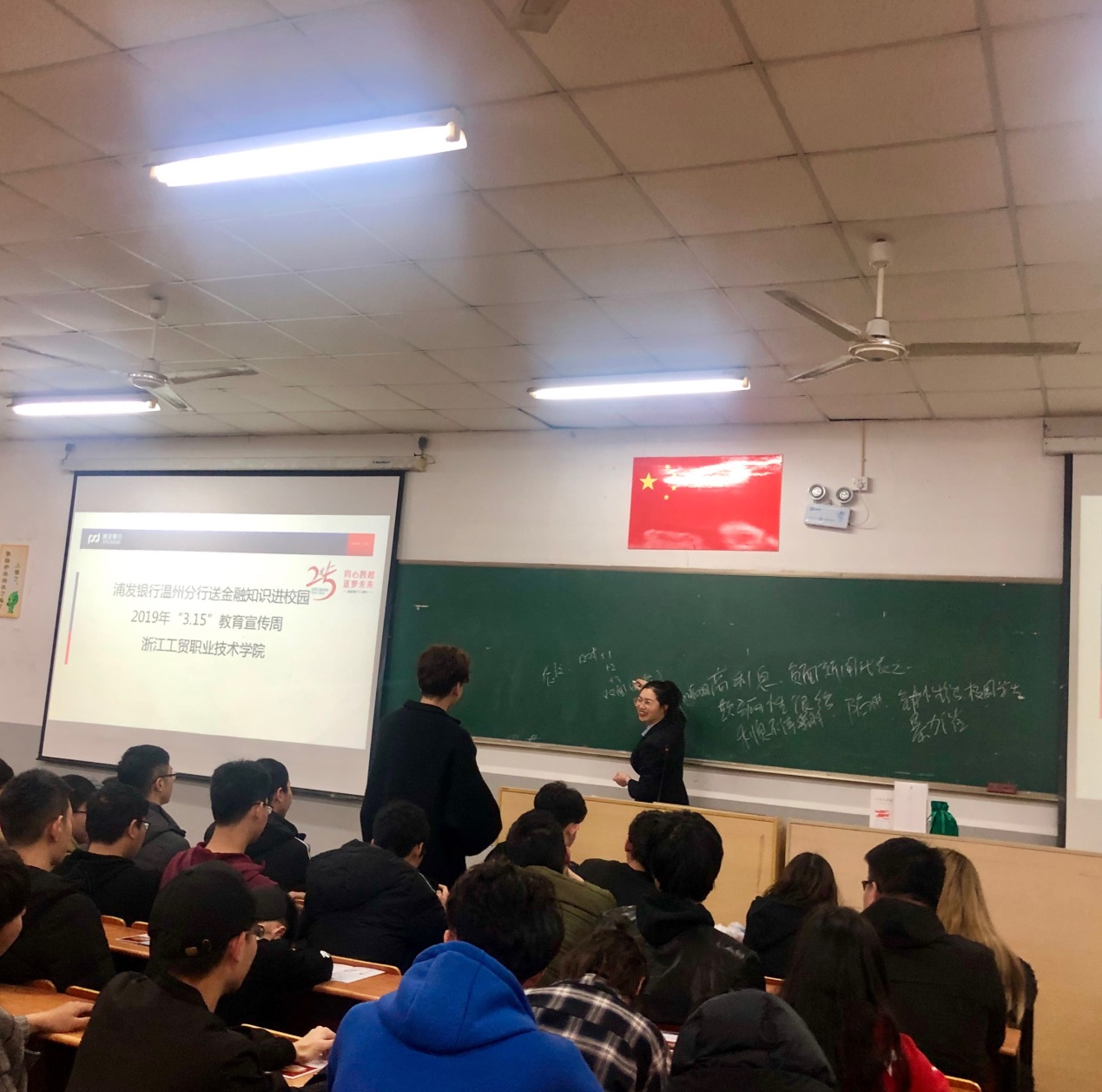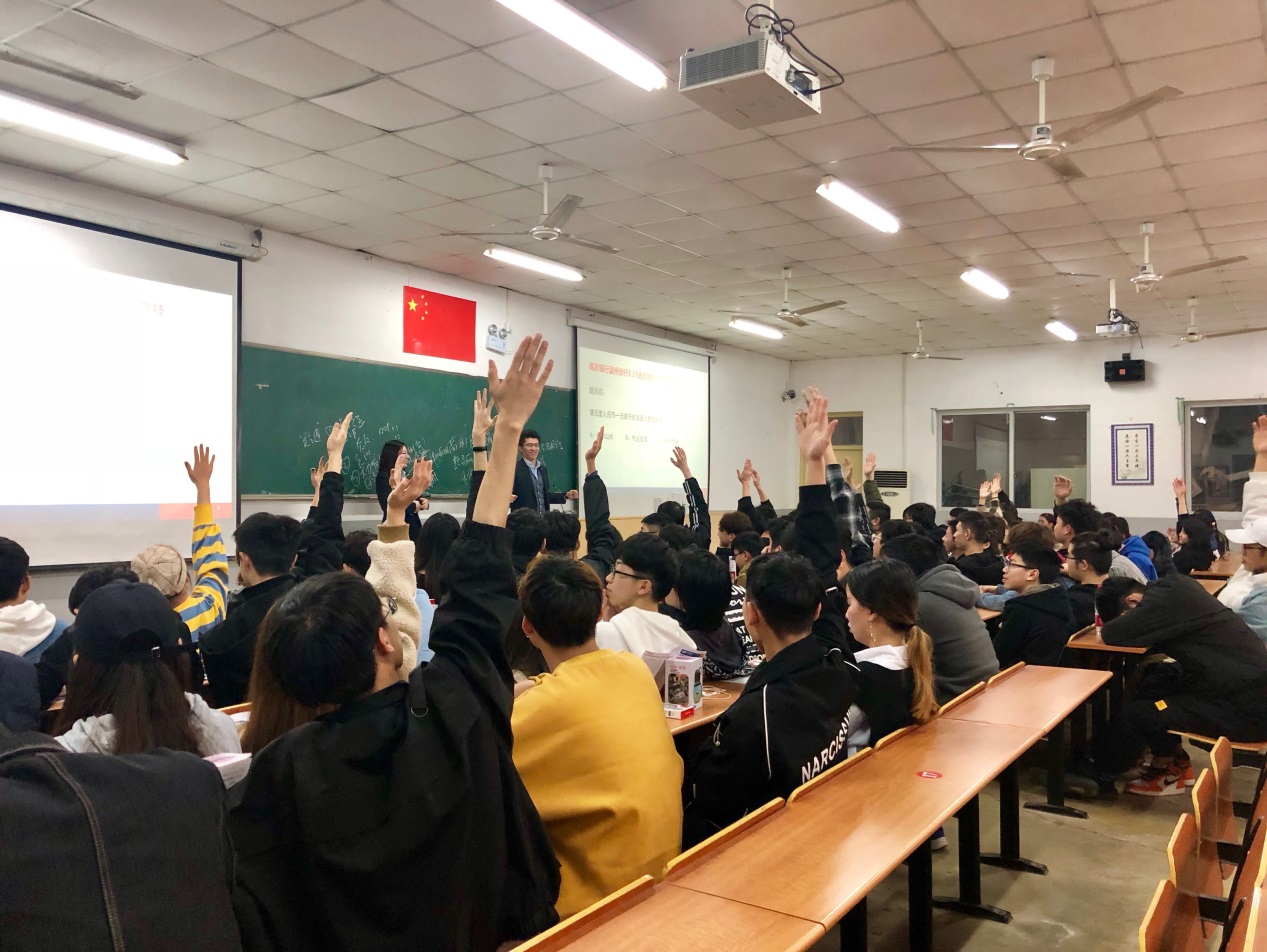 全体大二学生参加了本次活动,通过视频和话题讨论,引发大家热烈的反响,除了视频观看和话题讨论,银行的工作人员还准备了一轮金融知识竞技活动,通过现场抢答的方式,激发学生们学习金融知识的热情。