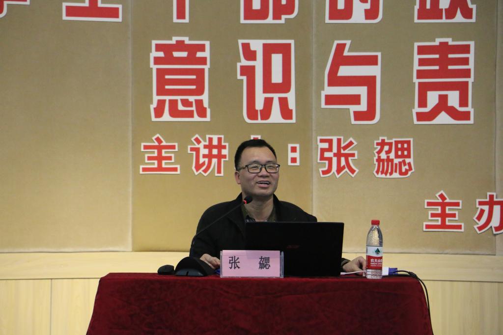 在讲座的第一部分,张书记抛出四个问题直接切入主题。通过四个问题的提问与交流互动让在场的学生干部们明白了政治意识的重要性。张书记说道:“懂政治才有方向,大学生是国家的未来,要有责任和贡献意识。”在解读“政治”两个字时张书记讲到要做到懂政治就应该跟着形势学,联系实际学,学会思考分析,学习习近平新时期中国特色社会主义思想,学习十九大精神,学习全国两会精神等。其次张书记解释了什么叫政治任务以及如何完成好政治任务。