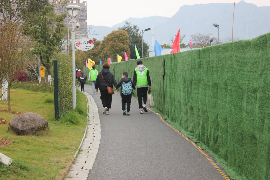 为了使志愿者们能胜任这个职务,志愿者们提前和“星星”家长沟通,了解孩子的特性,并根据自身条件选定一个孩子,一对一陪伴他们完成本次徒步走活动。活动当天,绿色啄木鸟志愿者们早早地来到杨府山公园,与老师和家长完成对接后,每个志愿者都找到了需要自己照顾的孩子,并牢牢地记住孩子的名字。活动前,志愿者们带领孩子们做热身活动,舒展筋骨,通过活动消除陌生感,建立友谊。在徒步过程中,志愿者们与孩子们一起唱歌、欣赏沿途风景,给孩子们讲故事,与孩子们捡沿途的垃圾,顺利完成了此次活动。在旁的家长看见孩子与志愿者们和谐相处,脸上露出了开心的笑容。