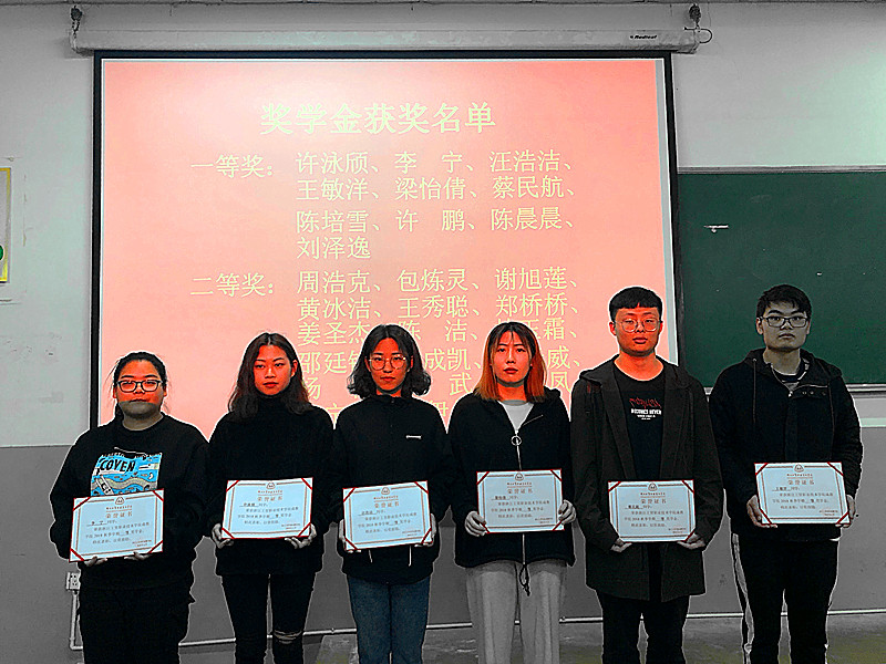 大会第一项议程由辅导员许多老师宣布活动流程,接着学生管理部主任潘丽瑶老师宣读奖学金获奖名单。李宁等10名同学荣获一等奖学金;王秀聪等17名同学荣获二等奖学金;陈菲等32名同学荣获三等奖学金,李清清等10名同学为2018秋季学期优秀学生干部;周浩祥等7名同学为2018秋季学期优秀团学干部称号。潘丽瑶老师对获奖的同学表示了衷心的祝贺并和教务部主任杨鹏老师一起给他们颁发证书拍照留恋。