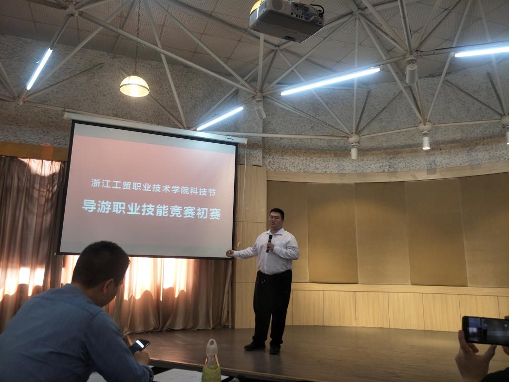 整个比赛参照浙江省导游职业技能竞赛的相关标准制定了竞赛方案,初赛主要从导游词创作、导游词讲解和礼貌礼仪等方面综合竞技。初赛分为三个阶段,动员阶段、培训阶段和初赛阶段。为了引导学生主动积极参与竞赛,赛前专门安排了两场培训,分别从竞赛准备、导游词创作、导游词讲解、形体礼仪等方面进行了针对性辅导,同时安排了往届导游技能大赛获奖学生进行辅助辅导,确保了初赛组织规范有序、学生参赛认真投入,充分展现了旅游管理专业学生良好的精神风貌和专业能力。