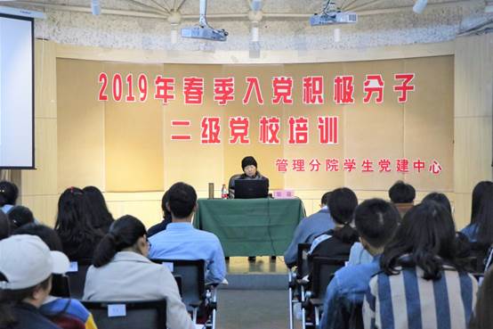 2019年4月13日至2019年14日,管理分院学生党建中心在多功能厅开展了2019春季学期入党积极分子二级党校培训集中上课活动,共有145名入党积极分子参与培训学习。这次集中上课分别邀请了管理分院党总支书记项光春老师,管理分院第二学生党支部书记朱观娟老师,人文系副教授、管理分院习读会指导老师郭薇等担任主讲。