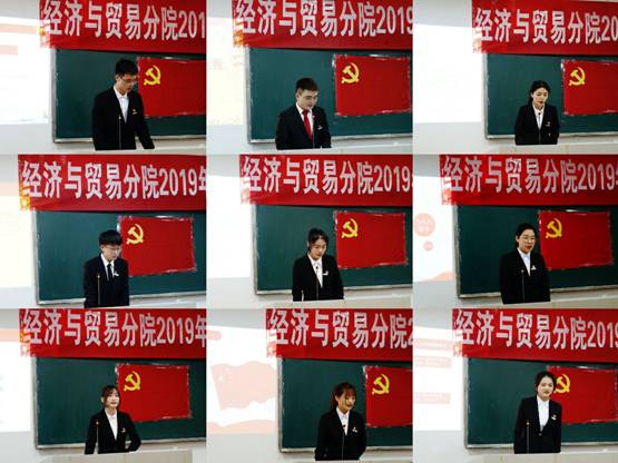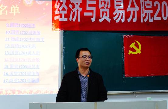 会上,经贸分院党总支书记张勰老师讲话,张老师指出:近年来对学生党员发展越来越重视,尤其是严格把关学生党员发展质量。张老师对发展对象竞选人员高度肯定,不仅学习成绩优异、工作和竞赛方面也非常突出。同时,张老师还介绍了分院正在建立校企联合党支部。