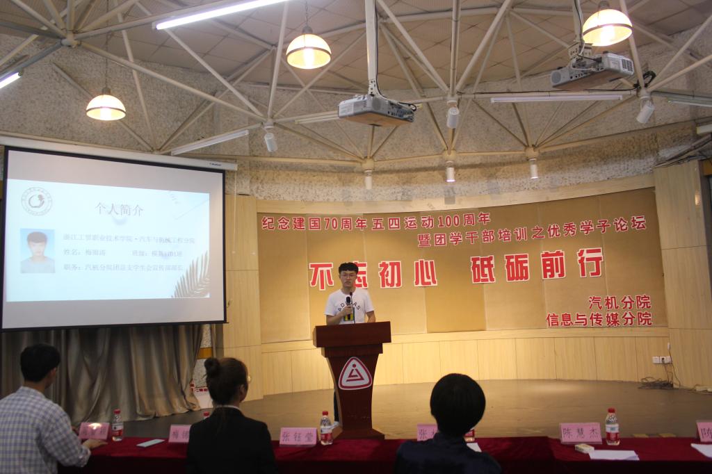 为了让大学生更加合理规划大学生活,拓展学生的学习思路,发扬大学生的风华正茂精神,2019年04月23日,汽机分院与信息分院在多功能厅联合举办以“不忘初心·砥砺前行”为主题的优秀学子论坛。两大分院的90名2018级学生参加了了此次学子论坛,论坛由汽机分院综合办公室干事余盛淼同学主持。