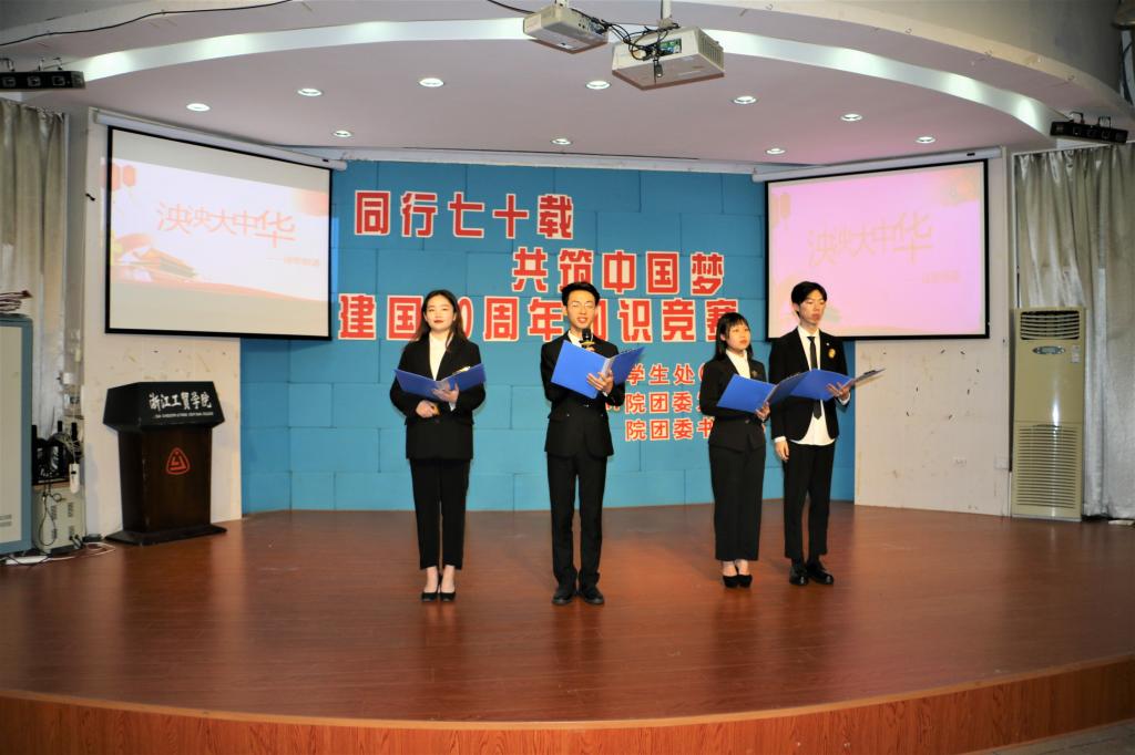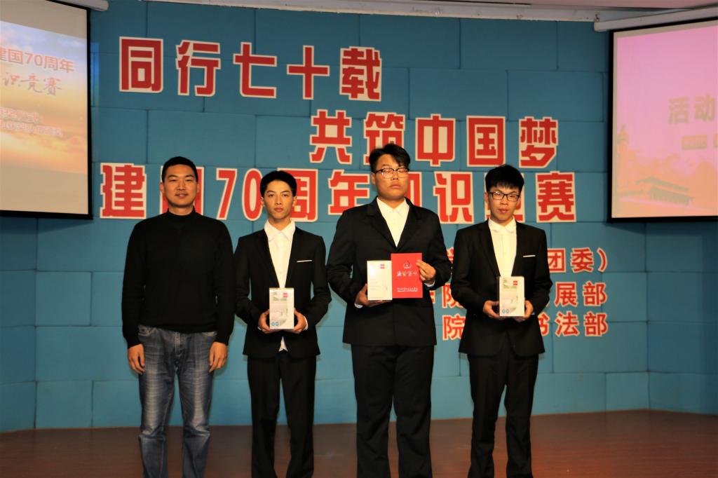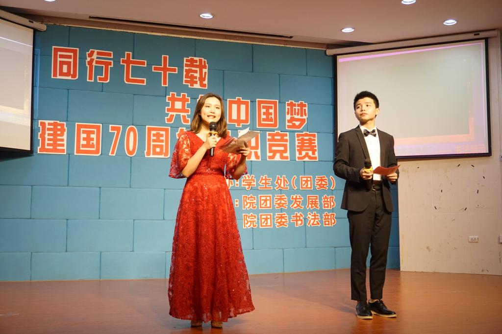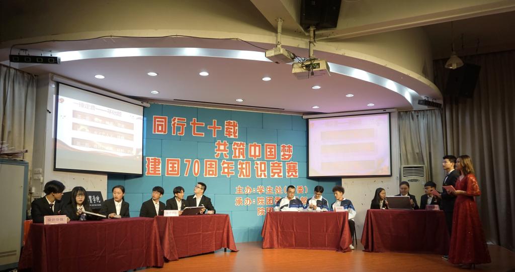 为了更好地铭记党的历史,传承党的光荣传统,继承和发扬党的优良作风以及高尚情操,大力弘扬以爱国主义为核心的民族精神和以改革开放为核心的时代精神,加强大学生思想教育及对党建知识的宣传。4月14日18:30,学院举办了“同行七十载,共筑中国梦”建国70周年知识竞赛。本次比赛由学院组织部俞通海老师、学生处(团委)张慧老师、学生处周钰涛老师担任,来自各分院(系)共计10支代表队参加了本次竞赛。