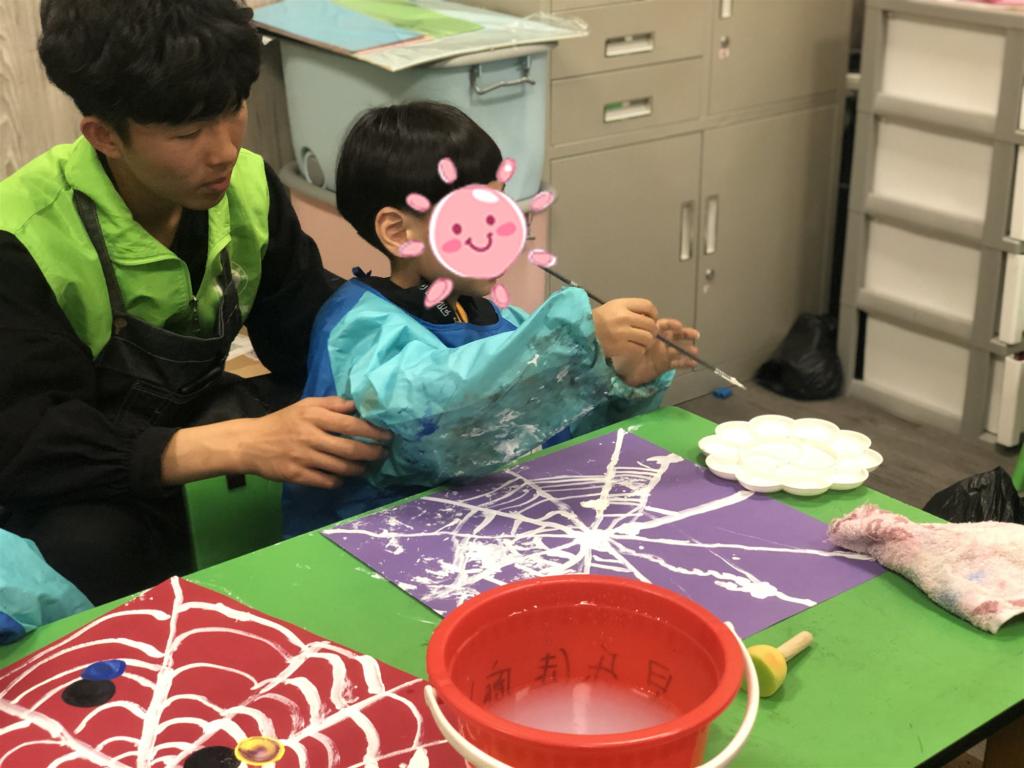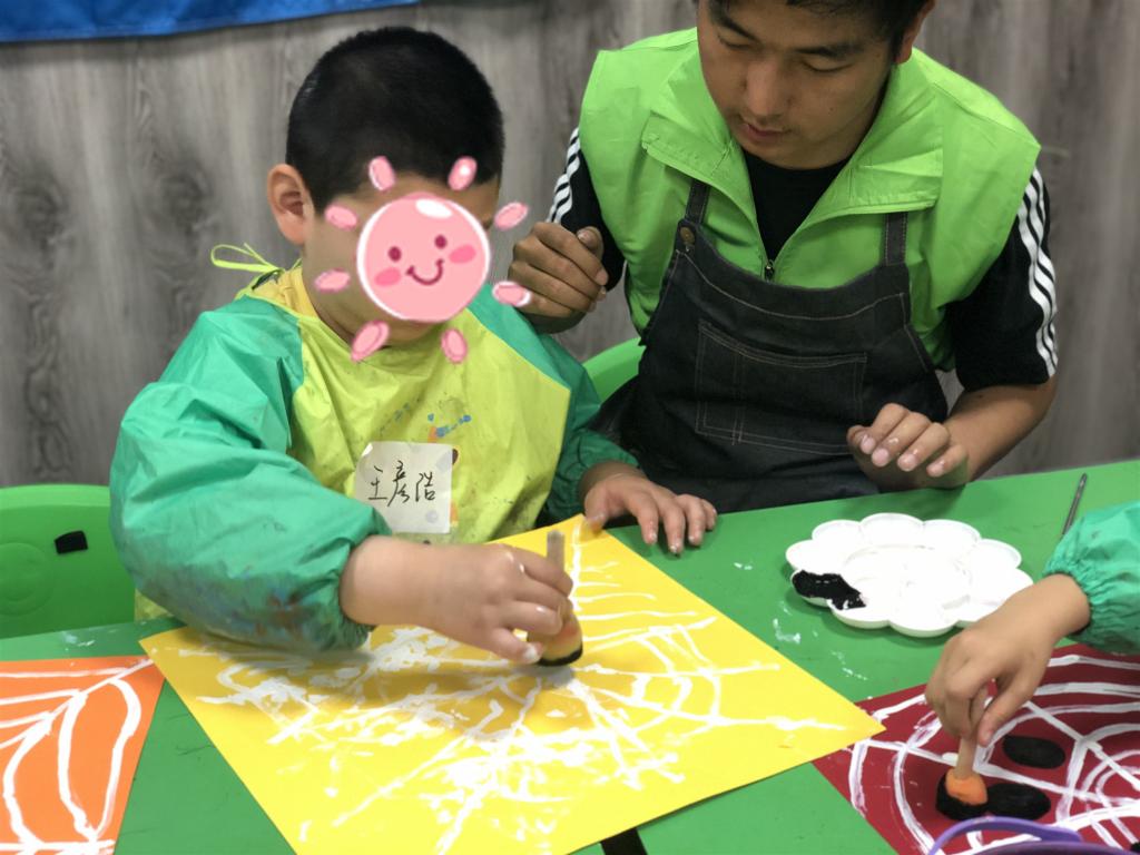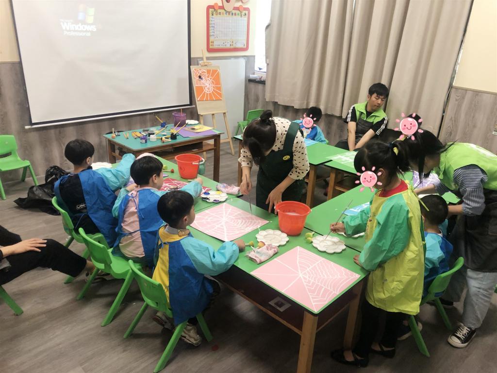 志愿者们经过与小朋友的前几次接触,现在已经没有了初遇时的紧张,也没有了小朋友是否还记得志愿者们的担心,更多的是可以再一次陪同小朋友一起画画的欣悦。而小朋友们也一样,见到志愿者们已经没有了先前的陌生,现在已经开始主动地和志愿者们打招呼,还主动地和志愿者们讲自己在幼儿园发生的事情以及自己早上做了什么。在画蜘蛛的课堂上,他们认真听小雪老师讲的故事,积极地帮小雪老师发放工具,专注地画蜘蛛,画画的时候还会说自己的想法,用各种方式画蜘蛛网和蜘蛛。下课后,他们也积极地去清洗自己的画画用具,现在的他们都不需要志愿者们帮忙,就可以很好地把工具清洗干净。
