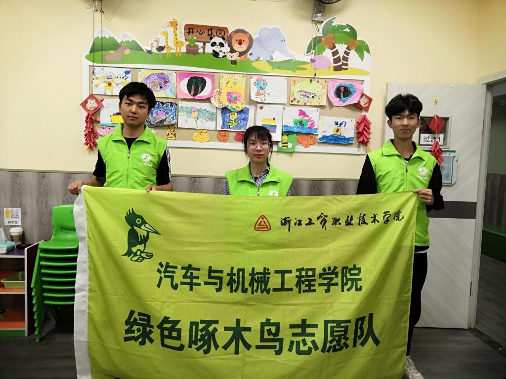 2019年4月27日,汽机分院绿色啄木鸟志愿队再次来到温州星乐儿童成长中心开展志愿活动。这是绿色啄木鸟志愿者本学期第四次走进小蜗牛艺术课堂,协助星星的孩子完成绘画课程,本次志愿者们和小朋友们一起画的是蜘蛛。