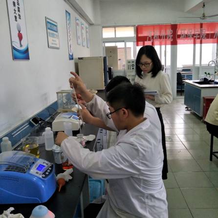 4月20日下午两点,经过紧张的初赛理论测试选拔,共有来自环境专业的十组二十位参赛选手进入决赛。5月11日上午九点,环保学院第一届水环境监测竞赛决赛在3号楼技能大楼409化学检测分析中心正式拉开序幕。每只参赛队由2名学生组成,理论考试闭卷进行,多参数水质分析仪测定水中COD项目盲样测试,现场操作。待测样品、纯水、试剂和仪器由竞赛组织方准备,操作考试顺序由抽签决定。多参数水质分析仪测定水中COD项目,以盲样测定值的准确性和平行样品测定值的精密性作为成绩评定的主要依据,辅助考查操作的规范性,原始记录、数据填写的规范性及完成时间等。