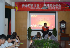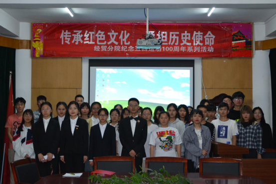 为了增强同学们的爱国意识,更好的传播和弘扬五四精神,5月6日晚6点30分,经贸分院于一号楼六楼会议室举办以“传承红色文化,勇担历史使命”为主题的五四青年节诵读活动,经贸分院40余名优秀学生干部参加了此次活动。