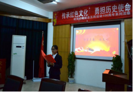 “弘扬红色精神,共筑中国梦想,传承红色精神,勇担历史使命”,慷慨激昂的朗诵、精彩的短片让同学们难以忘怀,感受到了五四运动精神的魅力所在,同时也激励同学们从现在开始努力学习科学知识,传承五四精神,勇担青春使命,为实现中华民族伟大复兴的中国梦不懈奋斗!