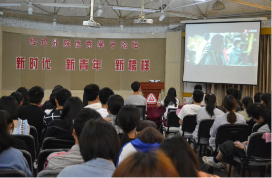 为营造良好的校园学习氛围,发挥榜样的示范带动作用,5月15日晚,经贸分院于多功能厅成功举办了以“新时代,新青年,新榜样”为主题的优秀学子论坛。本次论坛邀请了设计分院知识产权1701李岸禧、管理分院会计1704方丹阳、会计1702张钰莹、经贸分院市场营销1701郭小祥作为优秀学子代表,同时200余名经贸学子参加本次的论坛,听取优秀学子们的经验与学习方法。