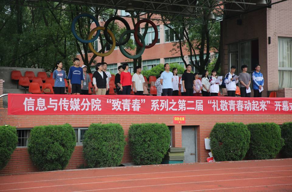 我院为庆祝新中国成立70周年暨五四运动100周年,同时为活跃校园气氛,增强同学们参加活动的积极性,于2019年5月19日在操场举行了“致青春”系列之第二届“礼敬青春动起来”活动。参加本次活动的有信息与传媒分院党总支负责人任志杰老师、信息与传媒分院辅导员张杨燕老师、信息与传媒分院文创专业主任余好老师、信息与传媒分院学生会主席团部长团以及2018届全体学生。
