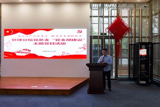在道德讲坛馆,管理分院党总支书记、教工党支部书记项光春老师以“落实从严治党要求,提升党支部组织力”为主题,以学习《中国共产党支部工作条例(试行)》为切入点,从为什么要制定《条例》、《条例》的主要内容有哪些、高校党支部如何落实《条例》等三个方面给大家上了一堂党课。项老师在讲课中指出,高校党支部落实《条例》首先要找准党支部的职责定位和重点任务,即“保证监督党的教育方针贯彻落实,巩固马克思主义在高校意识形态领域的指导地位,加强思想政治引领,筑牢学生理想信念根基,落实立德树人根本任务,保证教学科研管理各项任务完成。”接着,项老师围绕培养担当民族复兴大任的时代新人;强化政治功能,全面激发党支部活力;坚持以提升组织力为重点,增强党支部工作的吸引力和感染力;加强标准化、规范化建设,不断提高党支部建设质量等四个方面跟大家一起交流推进党支部建设的思路。