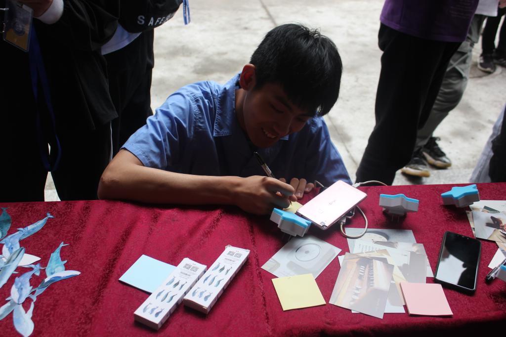 世界上有一群像星星一样纯净,也像星星一样孤独的孩子,他们被称为“星星的孩子”。虽然他们栖息在自己的世界里,但是我们的一个简单微笑可以温暖星空。在5月20日这个日子里,微笑告白自闭儿童活动主要以明信片寄语为主,写完寄语的同学手拿明信片用拍立得拍照,并把照片送给参与者。活动中有许多同学参与告白,他们一笔一划写下对自闭症儿童的告白。活动结束后,绿色啄木鸟志愿者会将明信片送到了温州星乐儿童成长中心。在三行情书告白活动现场,参与者们在便利贴上写下个人的告白,将自己心中话表达出来。现场,志愿者们将告白话语拼成爱心图。