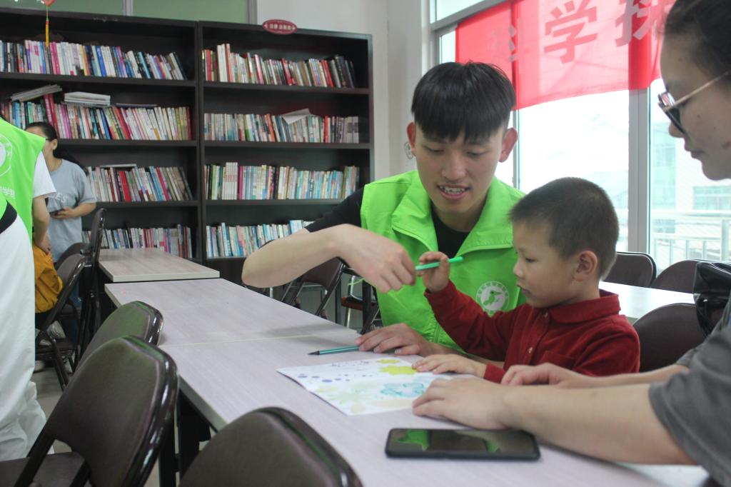 经历了一个多小时的车程,志愿者们来到了油岙村文化礼堂,礼堂文化负责人周勤必老师接待了服务队。油岙村的小朋友们已经早早地等候在教室,看着志愿者的到来,每个人的脸上期待着后续的精彩。志愿者们快速地布置着会场,挂活动横幅,连接电脑与投影仪等。此次下乡活动包括科学知识小课堂和科学手工课。小课堂由学生会组织部干事李佳洋主持,他与小朋友们一起学习四个为什么:为什么星星会一闪一闪,为什么萤火虫会发光,为什么向日葵总朝向太阳,为什么肚子饿了会咕咕叫。在课堂中,佳洋同学运用音频、视频、唱歌互动、现场提问方式,在轻松的氛围中学习知识。手工课堂带来的是小朋友们喜欢的热缩片制作。所有的小朋友在热缩片上画下自己喜欢的图案后,按照轮廓剪出图形,并用热风枪吹热缩图片,最后变成了精致小巧的图案,再系上红绳子,成为一个个精美的挂件。小朋友们看着自己的作品,各个露出了满意的微笑。