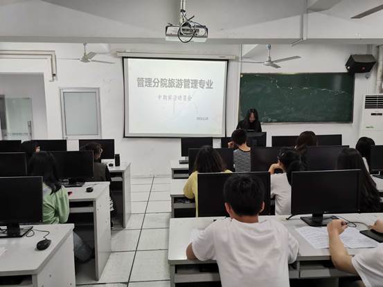 2019年5月20日下午3:30于伟德BETVlCTOR1946三号楼3604教室召开了管理分院2018级旅游管理专业中期实习动员会。管理分院党总支书记项光春、旅游管理专业主任夏正超、管理分院实训中心主任季建武及旅游管理2018级全体学生及四位2017级旅游管理专业中期实习优秀学生参加动员会。动员会由夏正超老师主持。