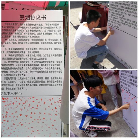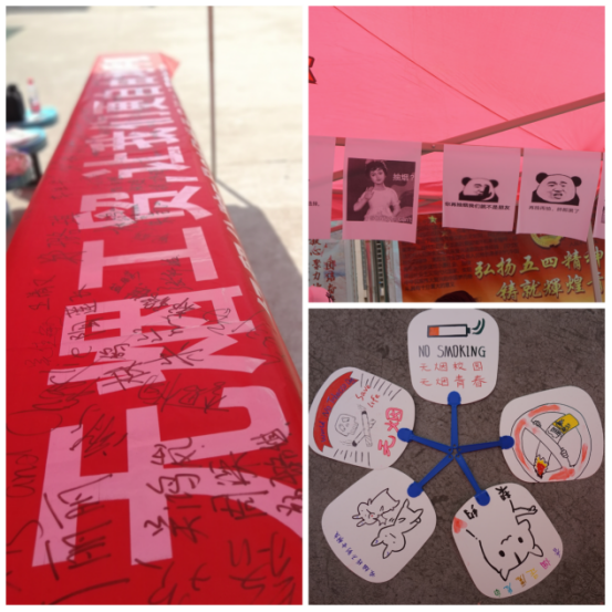 此次活动内容丰富,形式多样,不知不觉中吸引了更多的同学加入到禁烟宣传活动中来。通过阅读我们精心制作的禁烟海报和无烟校园倡议书、手绘“禁烟扇”、签名按手印、留影合照等方式,引导广大师生自觉做到远离烟草、崇尚健康、爱护环境,养成文明的生活习惯,创建无烟校园。