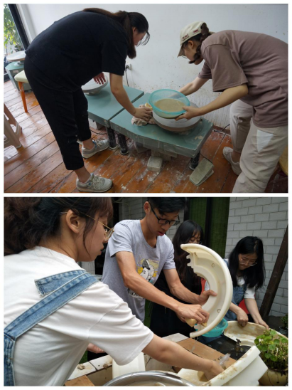 制作结束,经贸学子清洗手工制作后留下的泥渍。