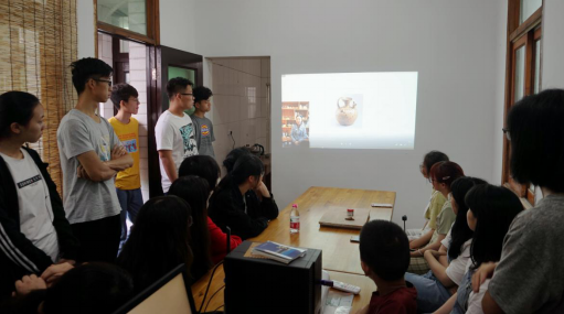 同时,为加深对瓯瓷工艺的了解及对泥团拿捏的把握,吴老师带领大家观看瓯窑瓷器制作的视频,并且耐心地向同学们讲解了捏泥团每一个步骤的作用和细节。