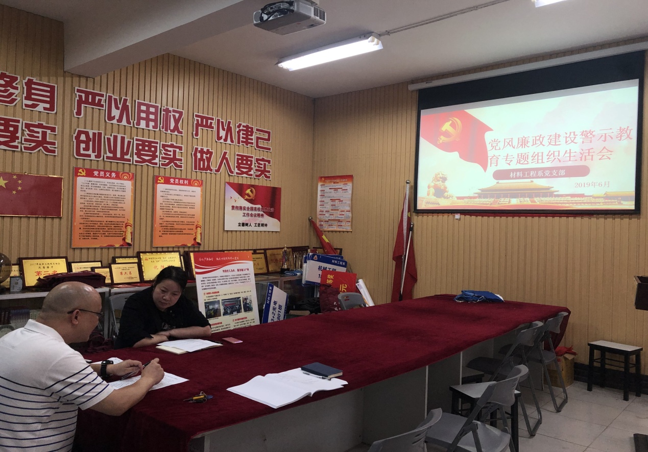 为全面贯彻落实省纪委《关于深入开展全省警示教育月活动的通知》(浙纪明电〔2019〕6号)和集团公司《关于深入开展党风廉政建设警示教育月活动的通知》部署要求,根据学院党委“关于开展党风廉政建设警示教育主题党日活动和专题组织生活会的通知”精神要求,6月3日中午,材料系党支部在系会议室召开了党风廉政建设专题组织生活会。学院纪委书记黄专途老师、材料系党支部全体委员参加了此次组织生活会。会议由材料系主任郑道友老师主持。