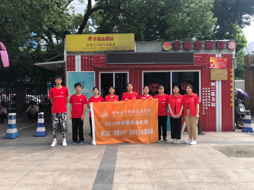 2019年7月1日,我院校学生社团联合会附二医“温暖计划”新青年下乡服务队伍穿着红色队服前往附二医为患者提供帮助。