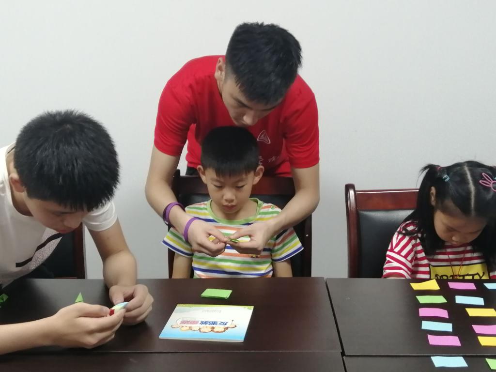 当小朋友们玩过了游戏之后,志愿者仔细讲解了各种非遗项目的历史与制作方法。由于活动现场有许多年纪较小的孩子,他们一步一步地将工艺品制作方法进行讲解剖析,并安排另一些志愿者辅助,对孩子们进行手把手教学。在志愿者们的耐心指导下,每一位小朋友都顺利完成了自己的作品。活动的最后,孩子们拿着属于自己用心制作的独特作品与志愿者们一起合照。