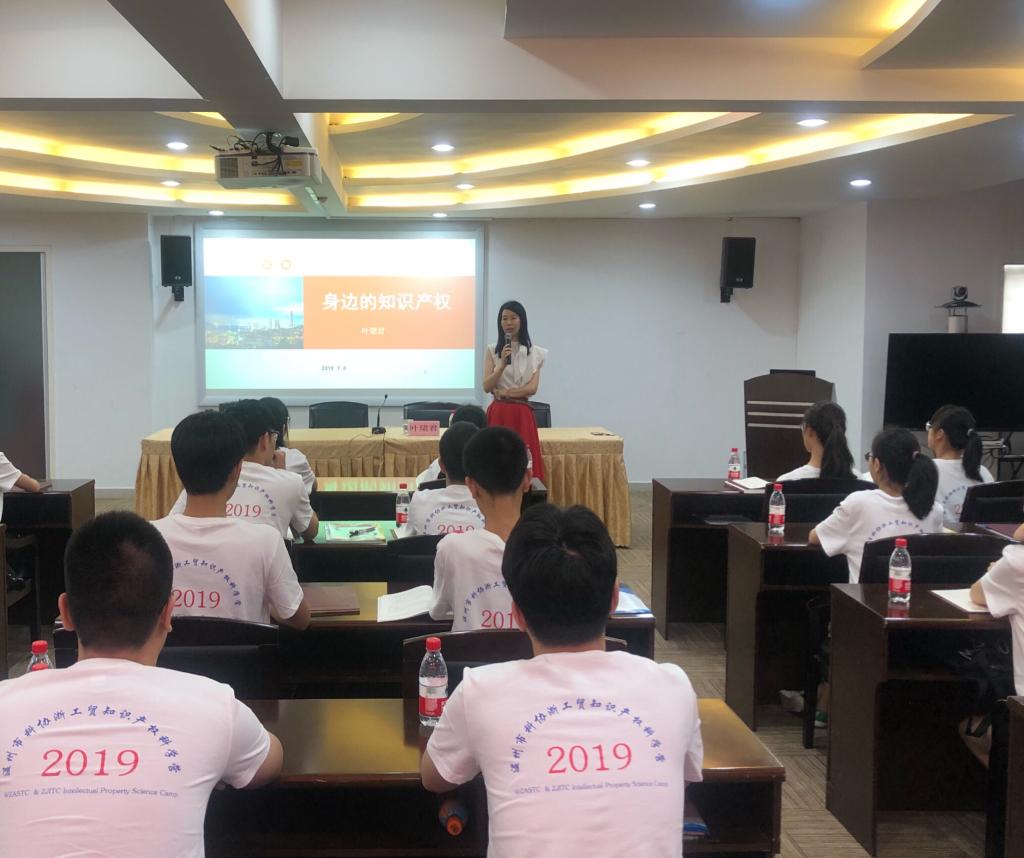 在开营仪式之后,科学营开启了知识产权探索之旅第一站—知识产权学院副院长叶珺君给学员们带来“身边的知识产权“的专题讲座。在场的20名学员们都是第一次来到大学校园,第一次聆听大学教授的讲课,感受了科学的精神和知识产权的魅力,所有学员都在专心听讲,勤于思考,认真做好课堂笔记,课堂里也不时响起热烈的掌声和欢笑声。