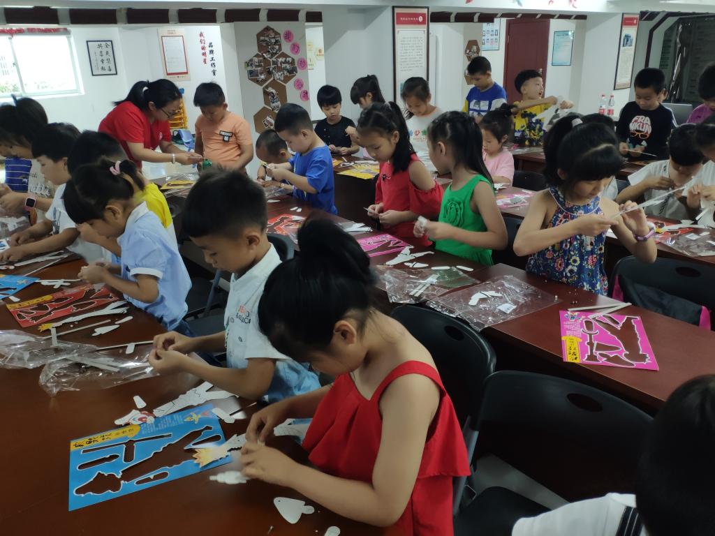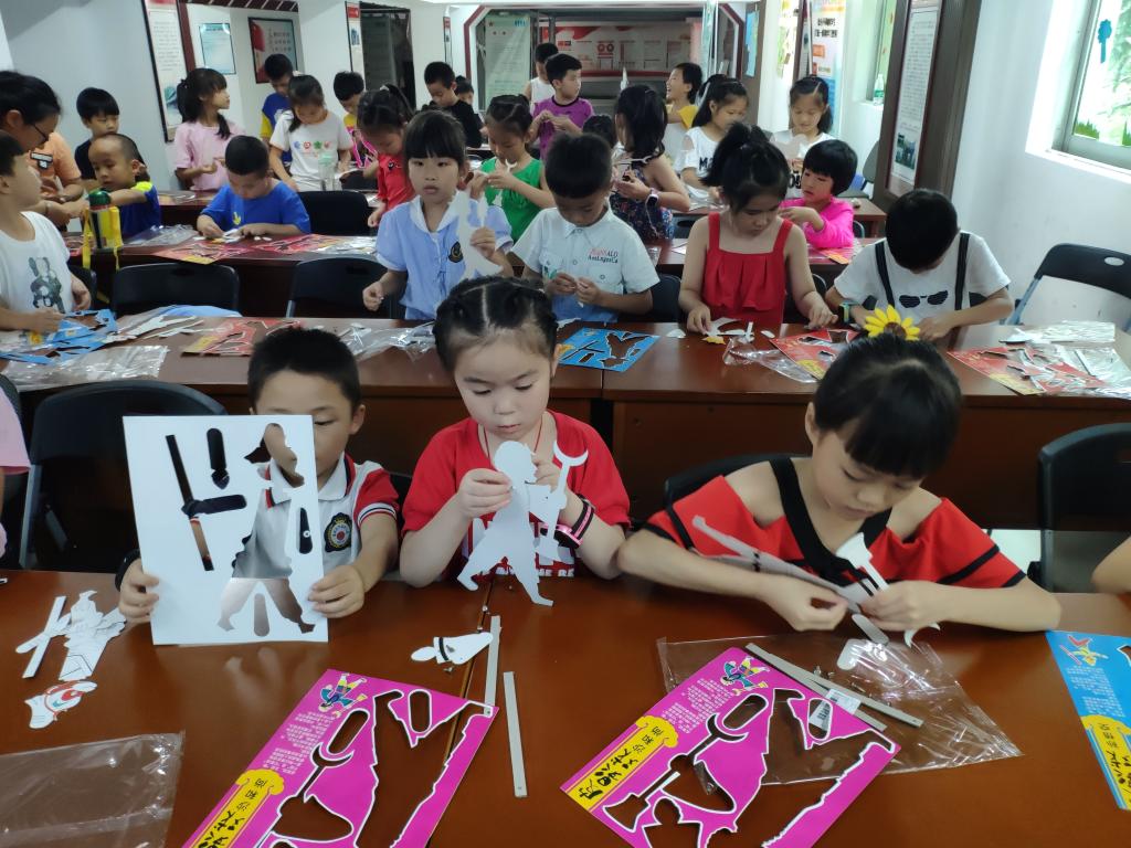 志愿者们还为孩子们准备了皮影的手工材料,可以让孩子们更好地了解皮影戏。孩子们专心倾听、用心揣摩。许多孩子年龄还小,需要志愿者们耐心教导他们制作方法,在老师们一点一点的帮助下,孩子们可以有模有样地制作出手中的皮影人物。也有孩子能够较快的自己完成手工,对自己制作出的作品不断摆弄着,皮影人物在他们手中上下翻转,来回跳跃,表演栩栩如生。伴着孩子们的欢声笑语,我们的皮影课堂进入了尾声。今天的非遗课堂让孩子们了解和学习这门古老而又奇特的艺术形式,希望通过这样的手工课能够让孩子们在实践中成长,在实践中感受到了非遗文化的乐趣。也希望皮影戏的艺术魅力和浓厚的文化底蕴能够不断的传承和发扬。