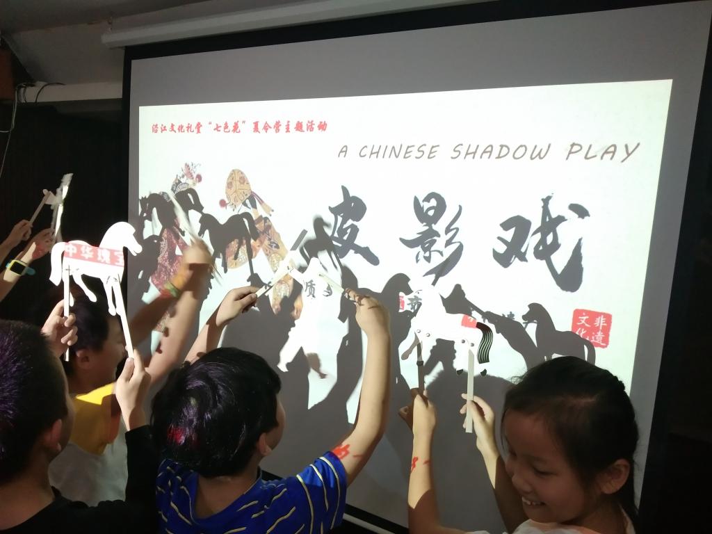7月8日,我院管理分院“智慧硕学、欢娱仲夏”新青年下乡服务队在仰义街道文化礼堂里开启了七色花新的模块——绿葡萄非遗馆。志愿者和老师们为小朋友们带来了一场生动有趣的《顽皮的影子》非遗课。
