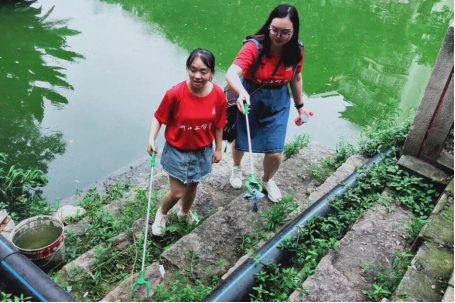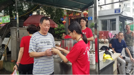 横河社区的15名志愿者则在社区负责人朱女士安排下,有的志愿者进行帮助社区人员进行有关身份信息确认、户口登记等工作。有的志愿者在社区负责人的陪同下,进行分发蟑螂药、清理河道垃圾、分析河道情况、规整河流周边环境等工作。有的志愿者协助义工发放茯茶,为每一个经过的路人,送上一杯解暑的茯茶,带来一丝夏日的凉意。