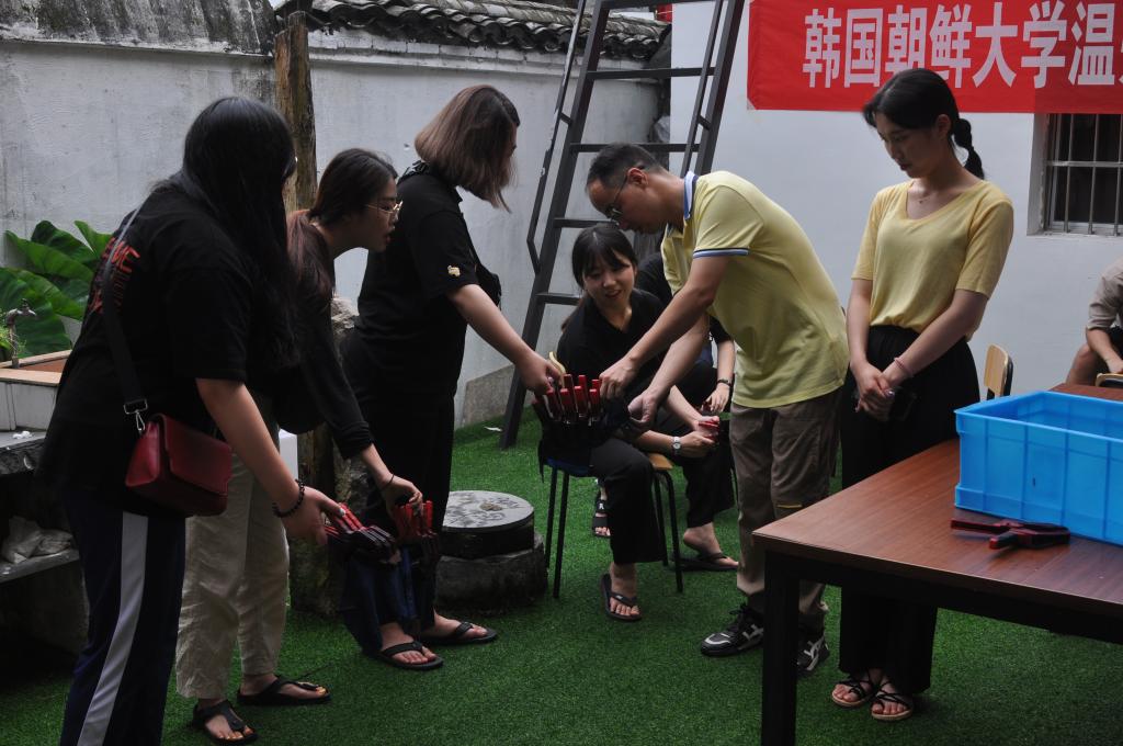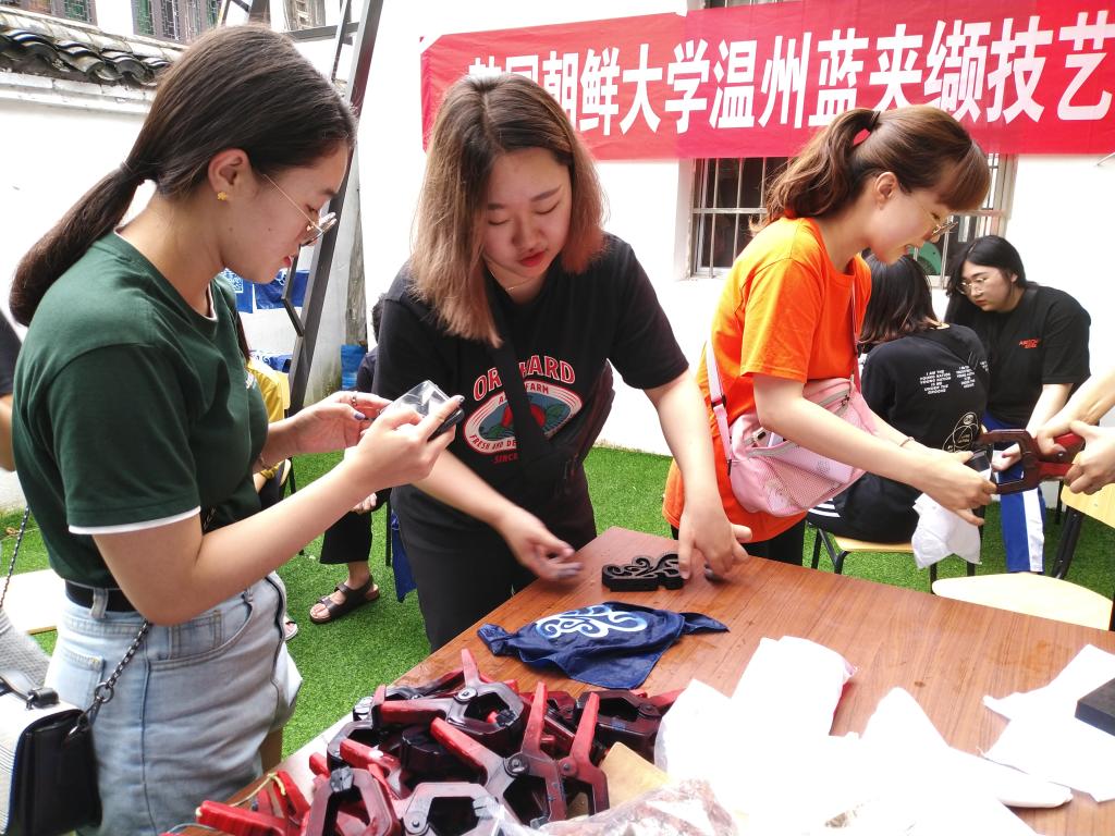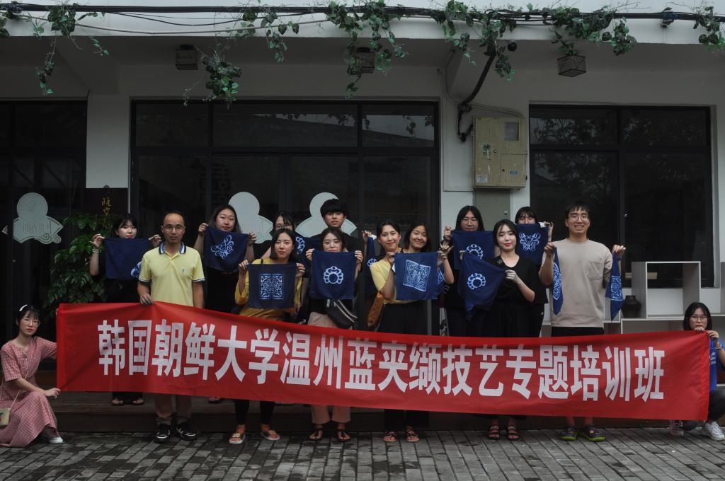 7月15日,来自韩国朝鲜大学的十多位同学走进温州瓯窑小镇我院工业设计工作坊,参加我院组织的温州蓝夹缬技艺专题培训。