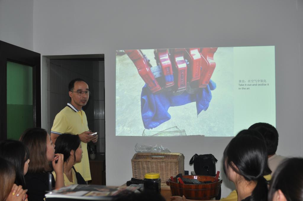 这是我院举办的第四次蓝夹缬技艺涉外培训,我院工业设计专业教师、温州蓝夹缬手艺人杨从锋老师给来自韩国的朋友详细讲解了蓝夹缬技艺的相关内容,包括蓝夹缬的历史与现状、图案、工艺链、制作流程等,并指导学员们使用古法靛青染缸完成了蓝夹缬手帕的制作。