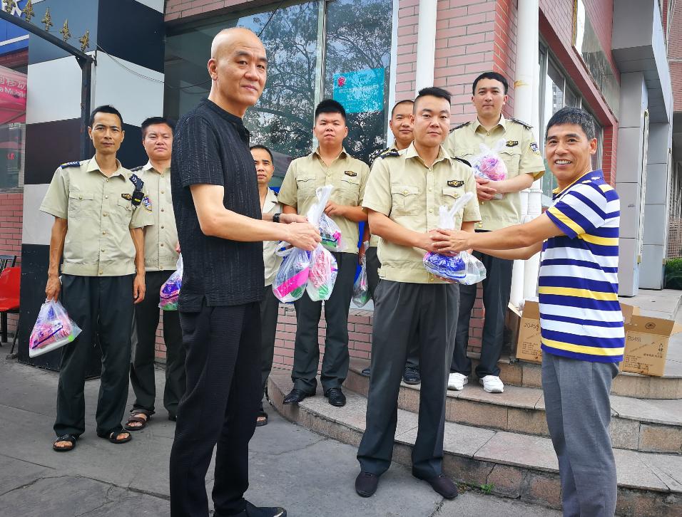 7月31日上午,学院工会章副主席及总务处、保卫处领导,对不畏酷暑坚守工作岗位的的近70名后勤、保卫人员进行走访慰问,向大家表达诚挚的谢意和亲切的慰问,并送上毛巾、沐浴露、花露水等慰问品,在炎炎夏日中为后勤、保卫人员送上一份关爱、一份清凉。