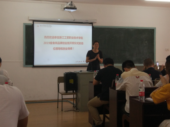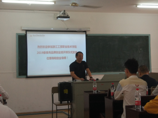 2019年9月9日上午9点,学院2019级食尚品牌创业班开班仪式在温州市就业创业训练指导中心2幢202教室顺利举行。学院创业学院院长林海春、温州市创业学院院长胡义军、温州市就业创业训练指导中心创业科科长王向品、温州市北橙策略广告有限公司总经理郭姹妍及工贸创业学院教师、温州市创业学院教师、温州餐饮行业创业导师及2019级食尚品牌创业班全体同学等40多人参加了开班仪式。开班仪式由创业学院院长林海春主持。