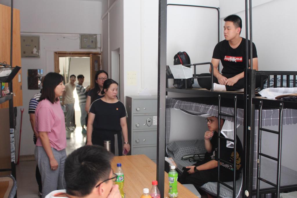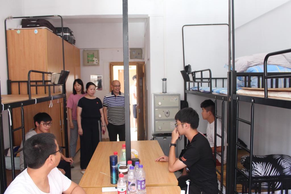 9月18日是学院新生开学正式上课的第一天。寝室是大学生生活和学习的重要场所。为掌握学生们的寝室生活状况,密切关怀学生,学院纪委书记黄专途老师在材料工程系书记、辅导员、学生干部的陪同下走访了D幢7楼女生寝室和B幢3楼男生寝室,与新生交流开学第一天的学习情况,了解同学们的寝室环境及课余学习生活等。