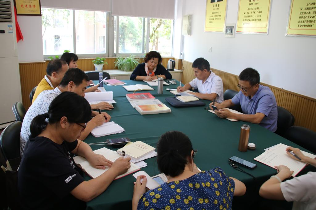 2019年9月24日,人文系党总支理论中心组专题学习会在马克思主义学院办公室召开,深入学习研究和领会落实中央、省委领导同志在“不忘初心、牢记使命”主题教育工作会议上的重要讲话精神。人文系党总支委员、行政班子成员、主题教育整改督导组成员黄爱素参加会议,人文系总支下属各支部书记列席会议。会议由人文系党总支书记章纪顺主持。
