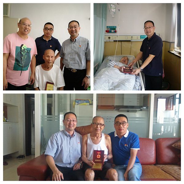 9月19日至25日,温州冶金集团党委书记、董事长李海滨,总经理、副书记李向荣分别为离休干部、建国前老工人送去“庆祝中华人民共和国成立70周年纪念章”,并向他们送上节日的祝福和党组织的问候。