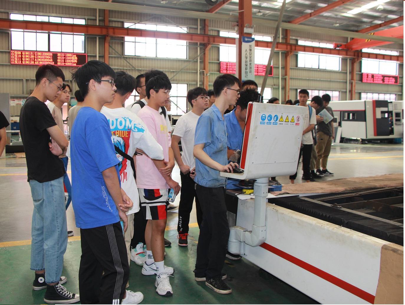 图为光电专业教师钟正根、关雷、徐临超带新生进行专业认知,在奔腾激光、嘉泰激光、臻锦智能科技等企业的部分参观照片。
